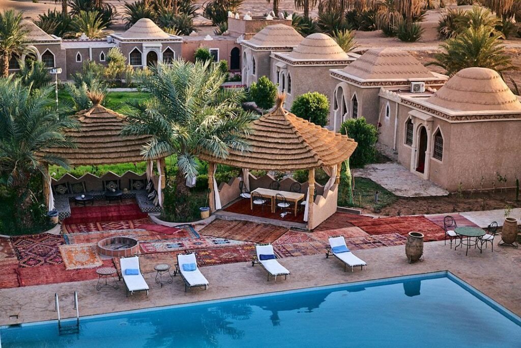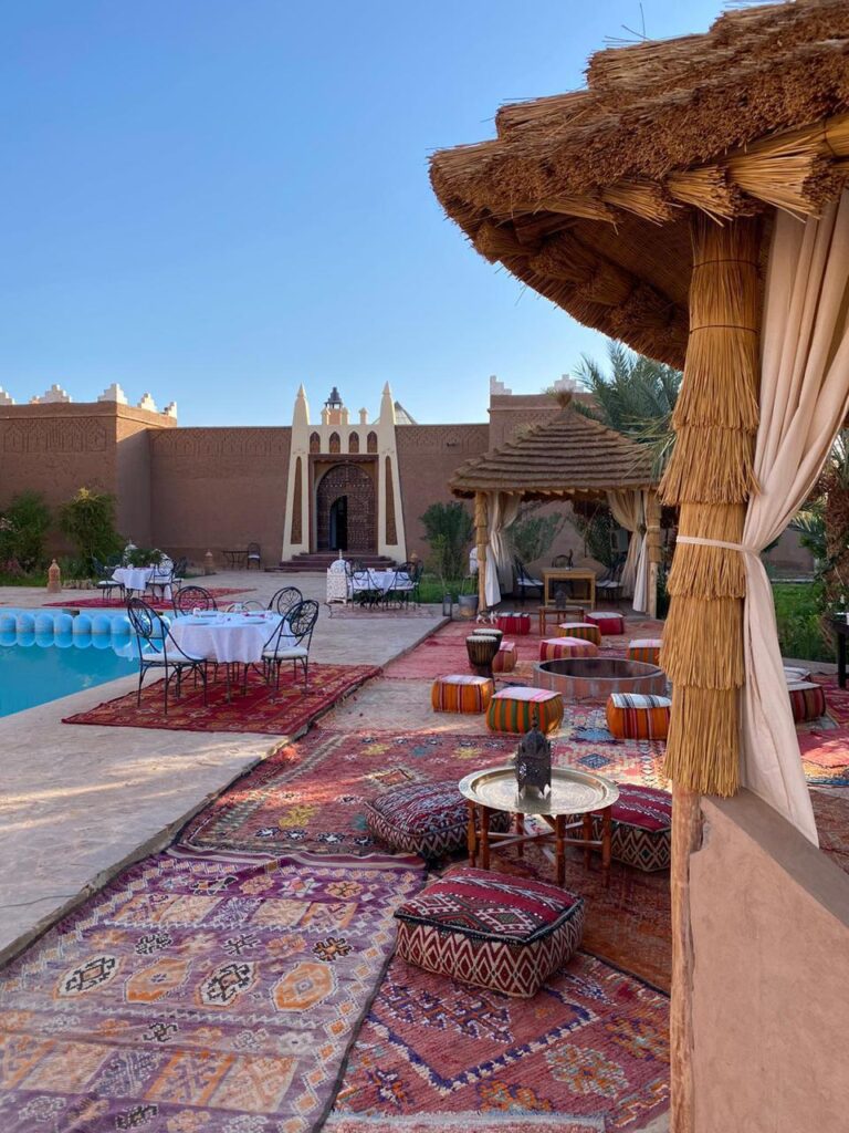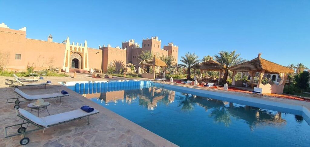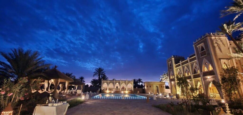 le Palais est situé à M’HAMID au Maroc au pied du vaste desert du Sahara . C est une Mecque sans méfiance de l art et de la culture niche à l interieur des murs de luxe