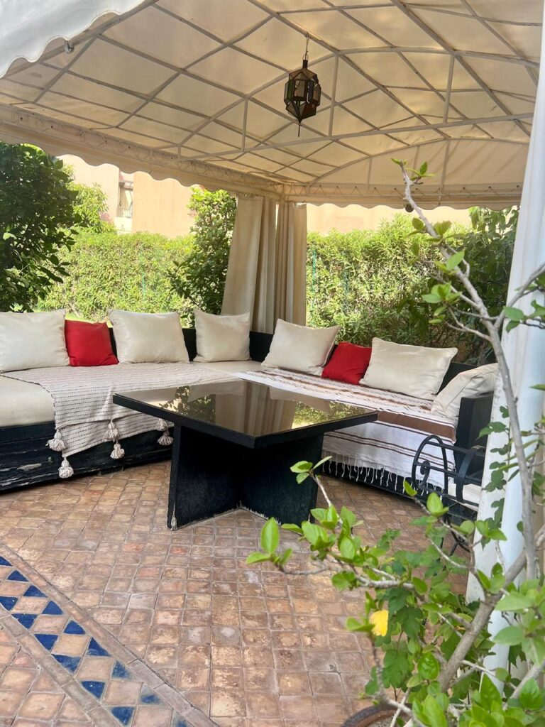 Jolie petite villa située sur la route de Ouarzazate  à 15 mn du centre ville et 5 mn des golfs prestigieux ( golf d’Amelkis -Golf Royal – Golf Almaden  )
