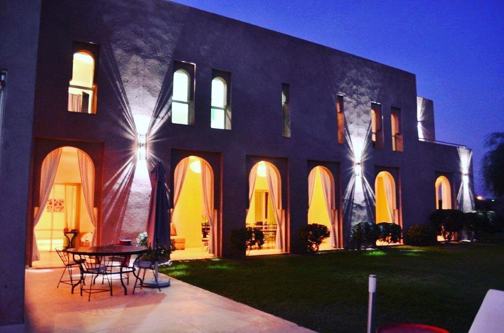 Magnifique demeure contemporaine située à la frontière de la Palmeraie et de Bab Atlas a 20 mn du centre ville et à 15 mn des golfs prestigieux ( palmeraie golf palace – Golf d D’Amelkis – Golf Royal- Golf Al Maaden )